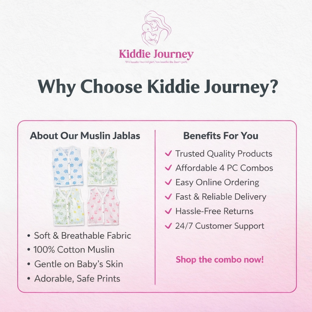 Muslin Jabla Button – 4 PC Combo for Newborn Babies (0–6 Months)